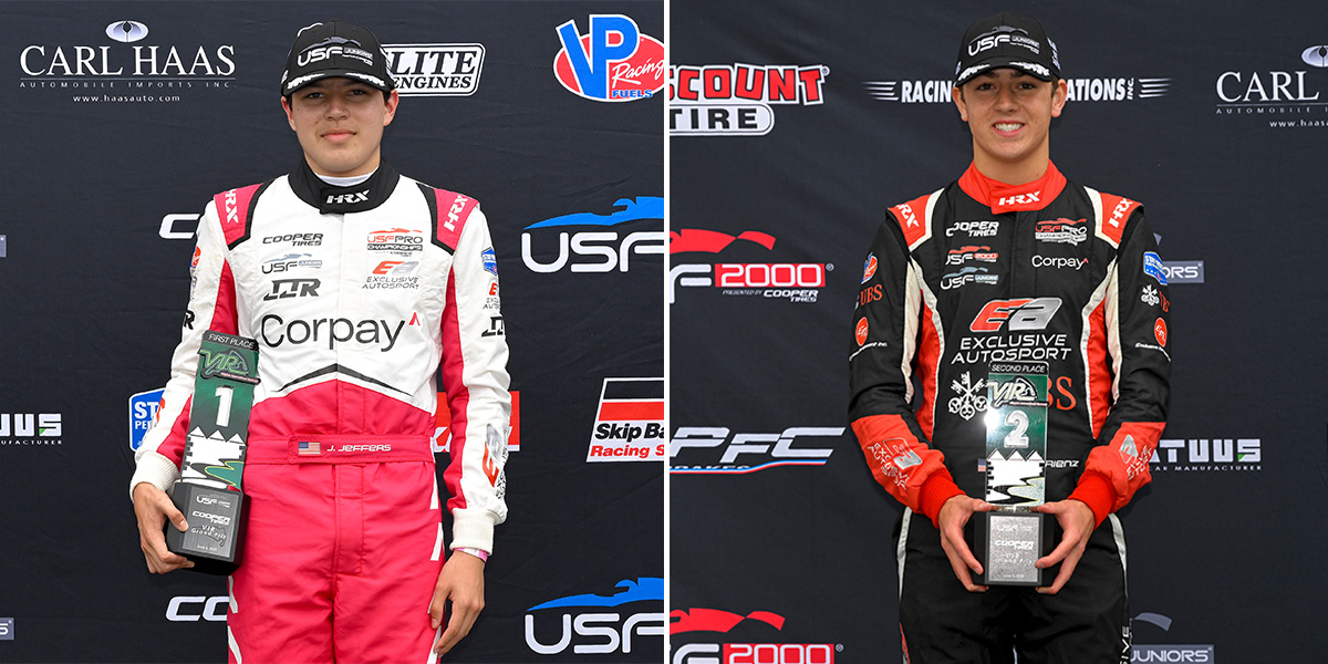ALTON, Va. – Brazilian Nicolas Giaffone and first-time winner Jack Jeffers, from San Antonio, Texas, shared the victory spoils today as this weekend’s Cooper Tires VIR Grand Prix concluded with a pair of exciting USF Juniors Presented by Cooper Tires races at VIRginia International Raceway.